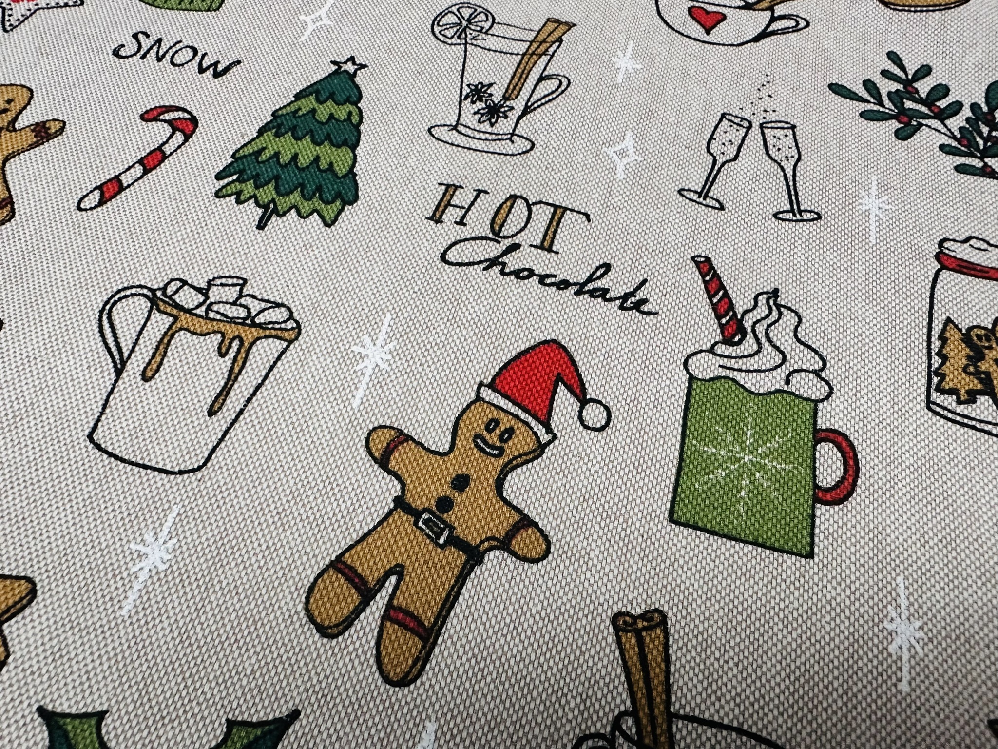 Christmas Gingerbread Fabric – Holiday Hot Chocolate Cookies Winter – Festive Cushion Sewing Home Decor – 140cm or 55″ Wide