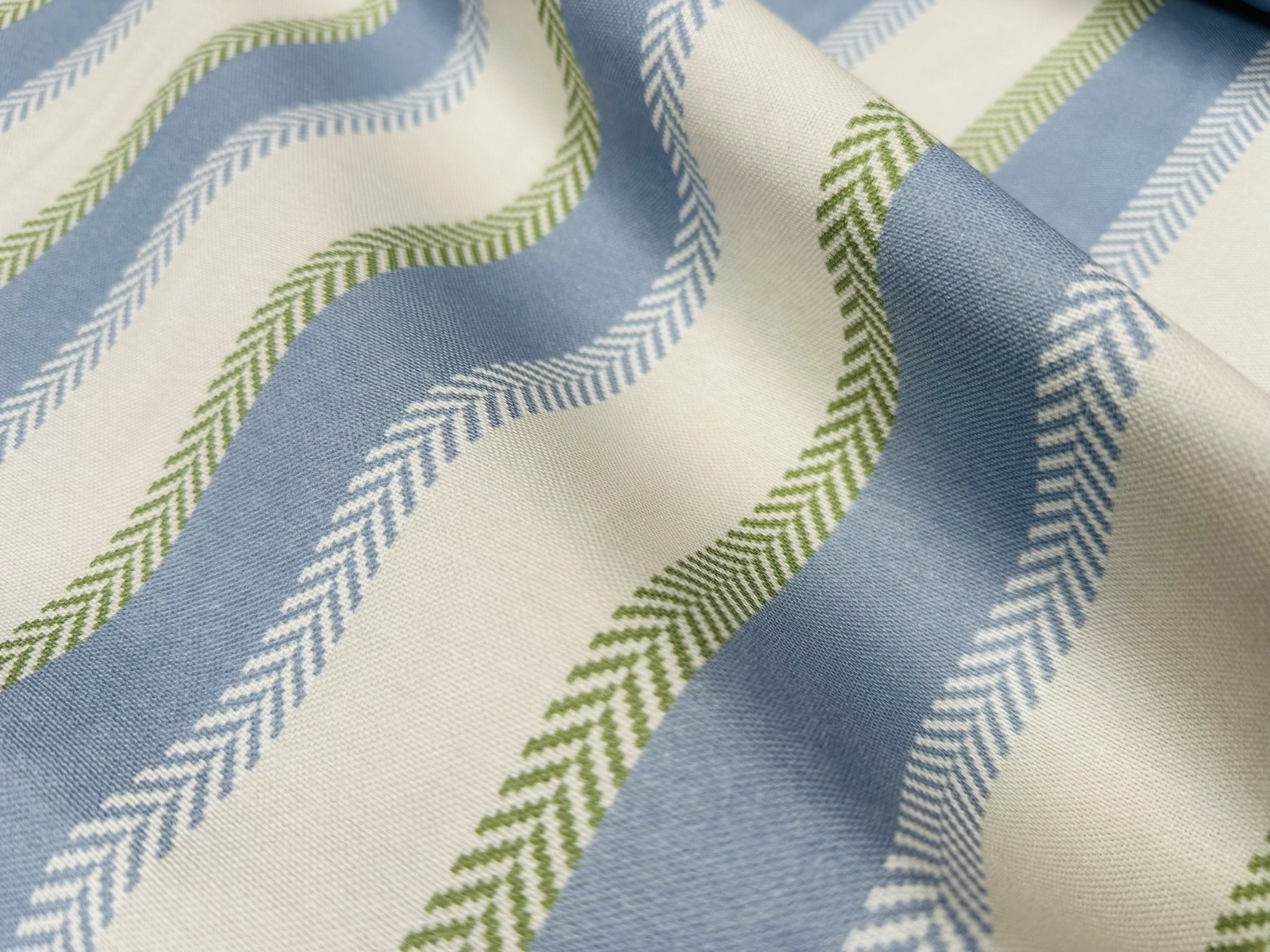 Chevron Stripes Fabric Herringbone Cream Stripe Design for Home Decor Upholstery Curtains Cushions Table Runners – 55″ or 140cm Wide – Blue