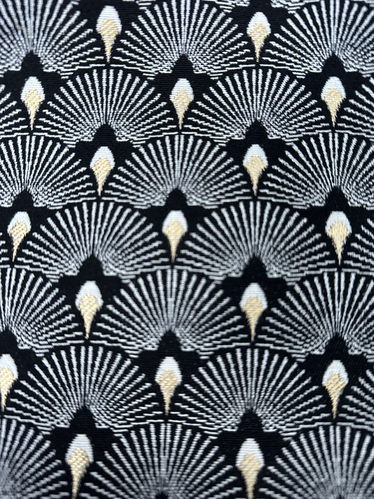 Jacquard Metallic Art Deco Scales Gobelin Fabric – Black & Gold Geometric Woven Tapestry – Upholstery Home Decor – 140cm Wide