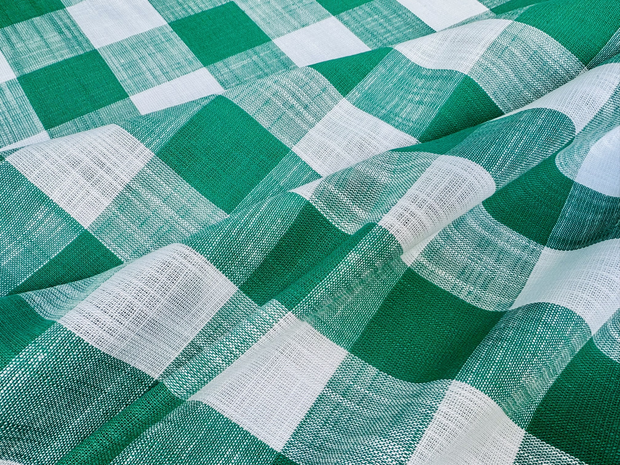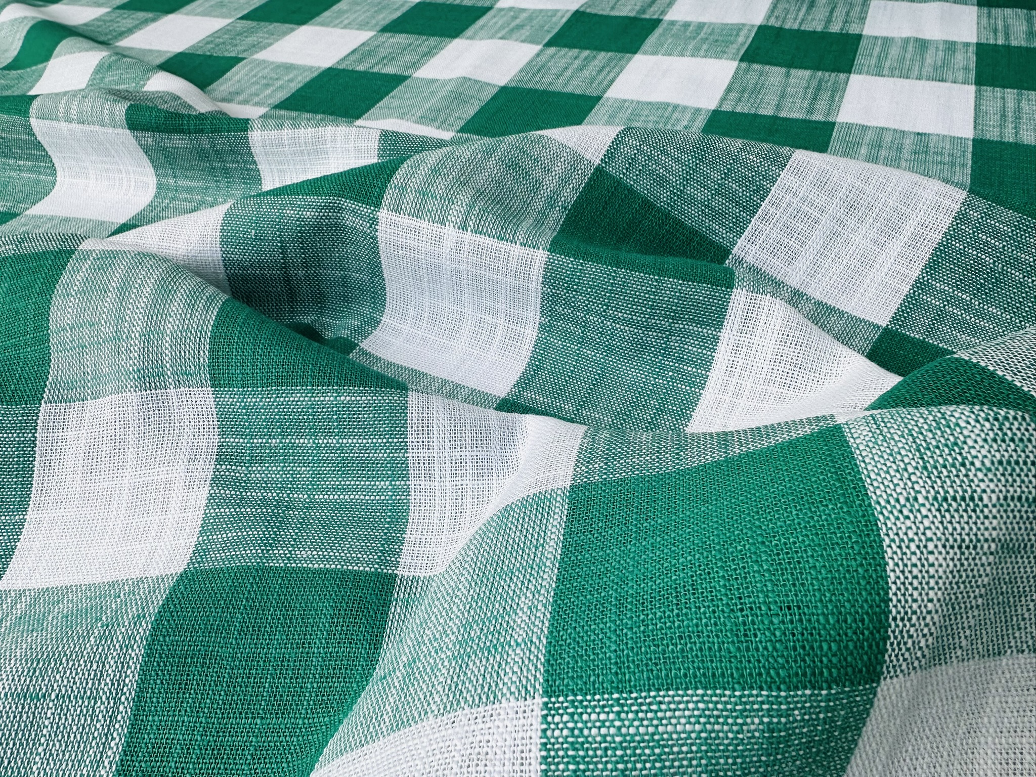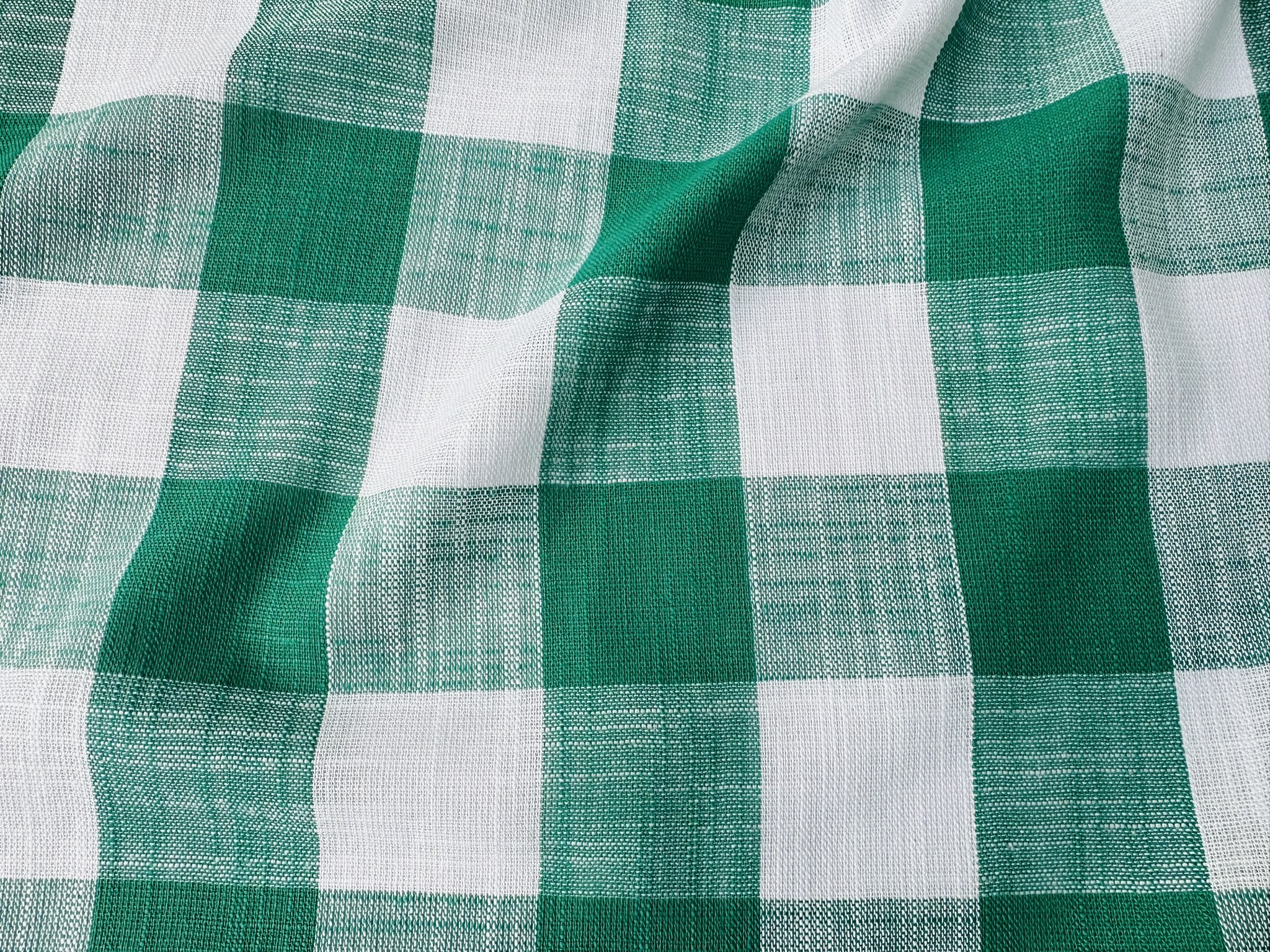 Green & White Gingham Linen Checked Linen Fabric Plaid Material Buffalo Check Cotton Yarn Tartan – 59″ or 150cm wide