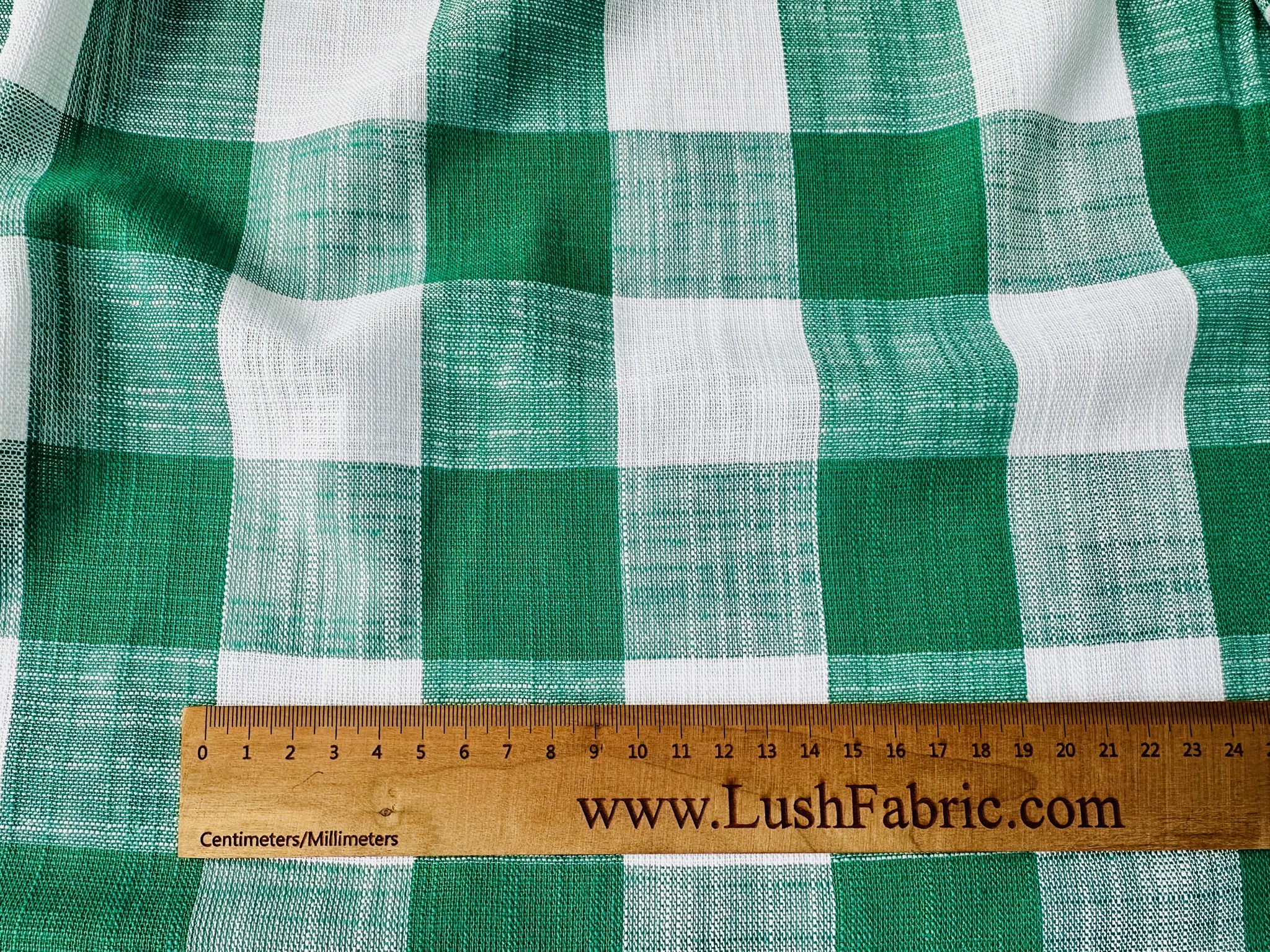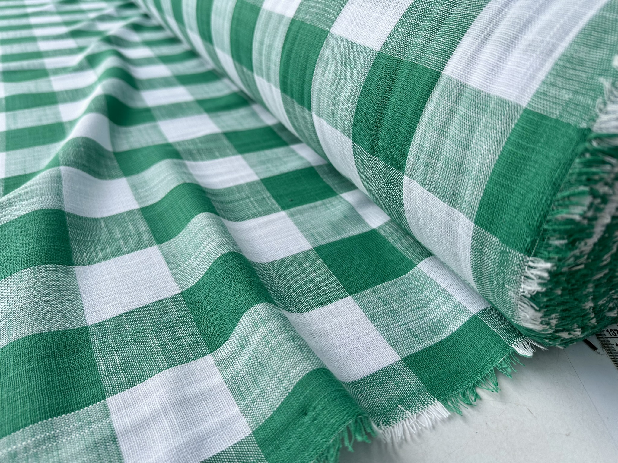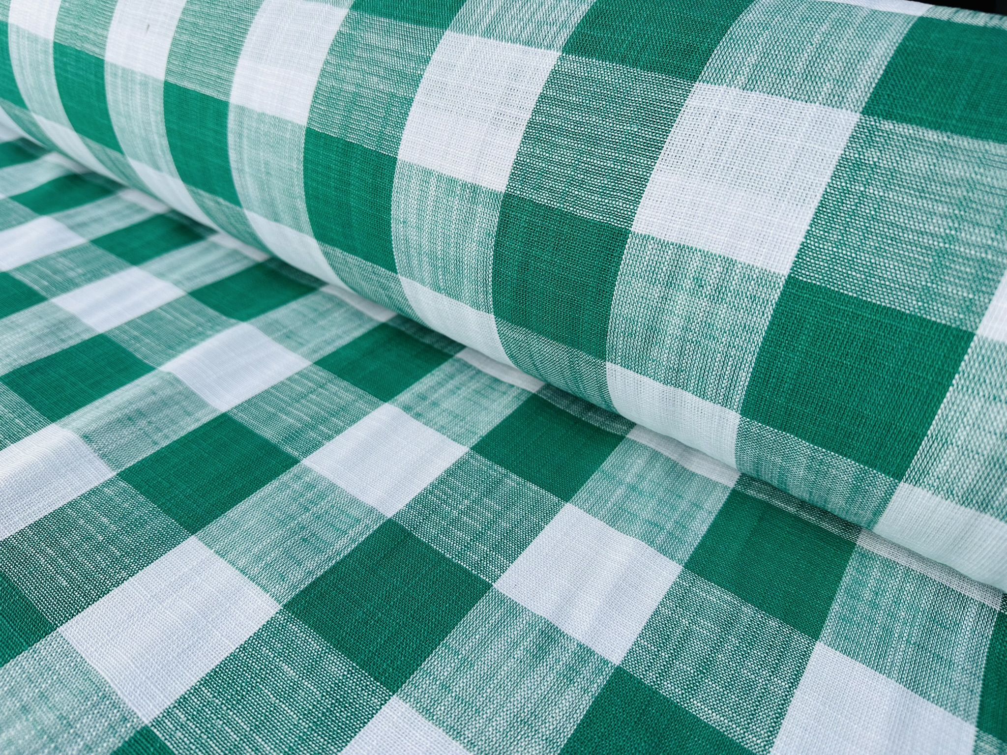 Green & White Gingham Linen Checked Linen Fabric Plaid Material Buffalo Check Cotton Yarn Tartan – 59″ or 150cm wide