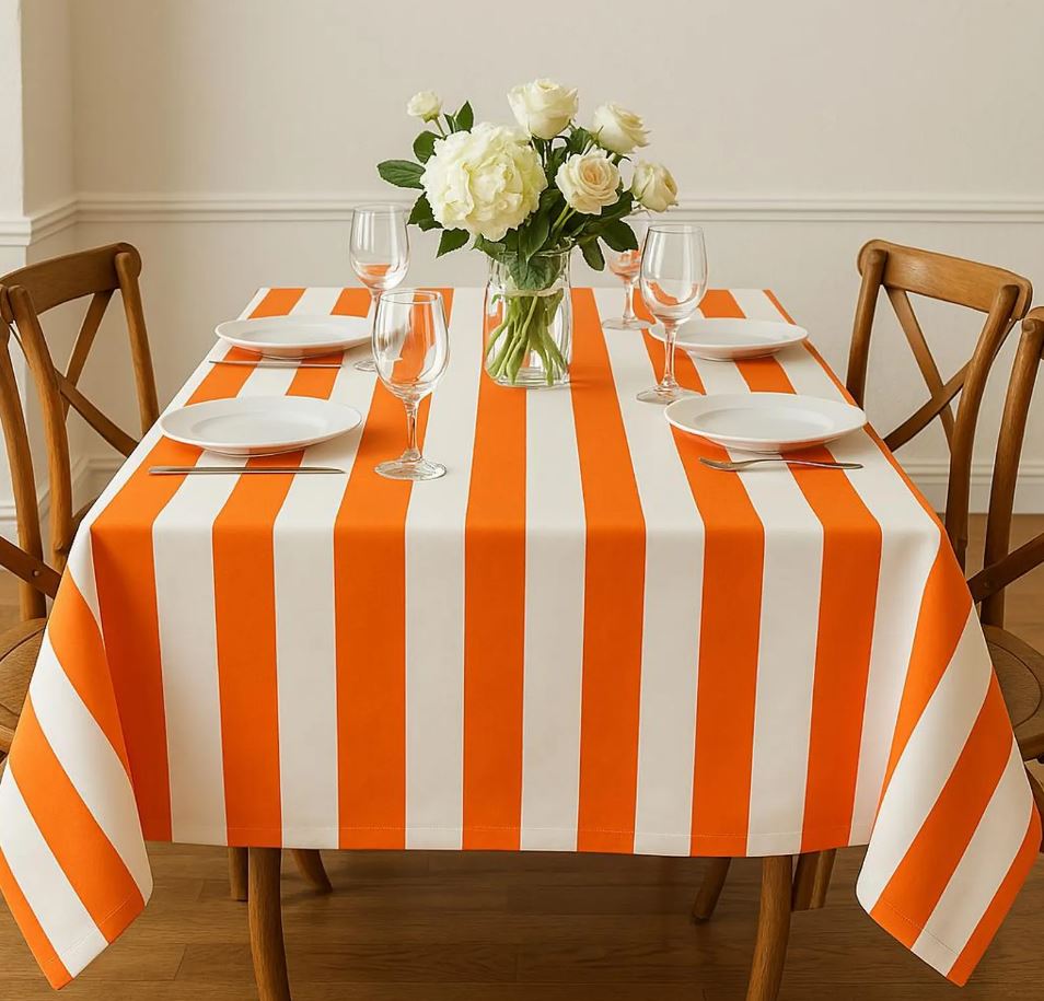 Orange & White Striped DRALON Outdoor Fabric Acrylic Teflon Waterproof Upholstery Material For Cushion Gazebo Beach – 63"/160cm Wide