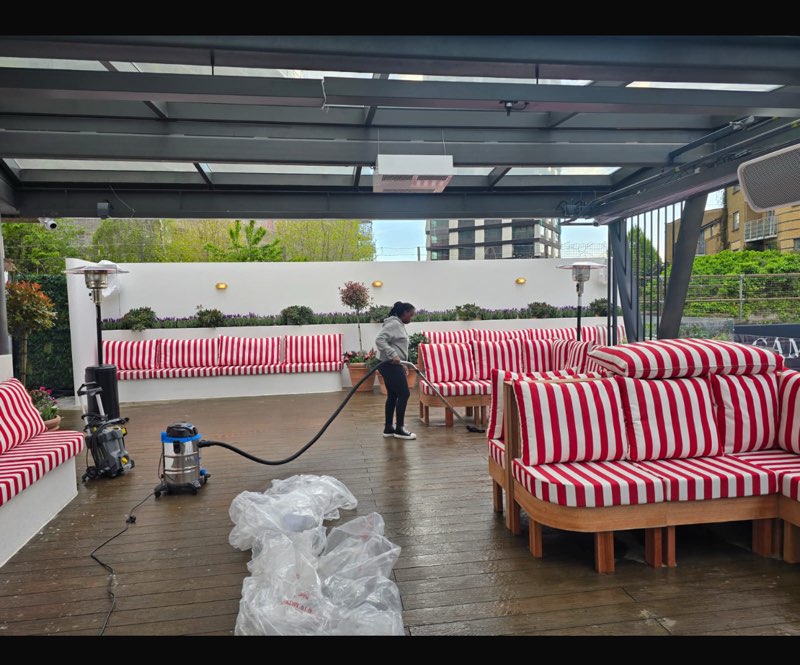 – Outdoors, fabric protector provides continuous protection for awnings and patio furniture cushions.