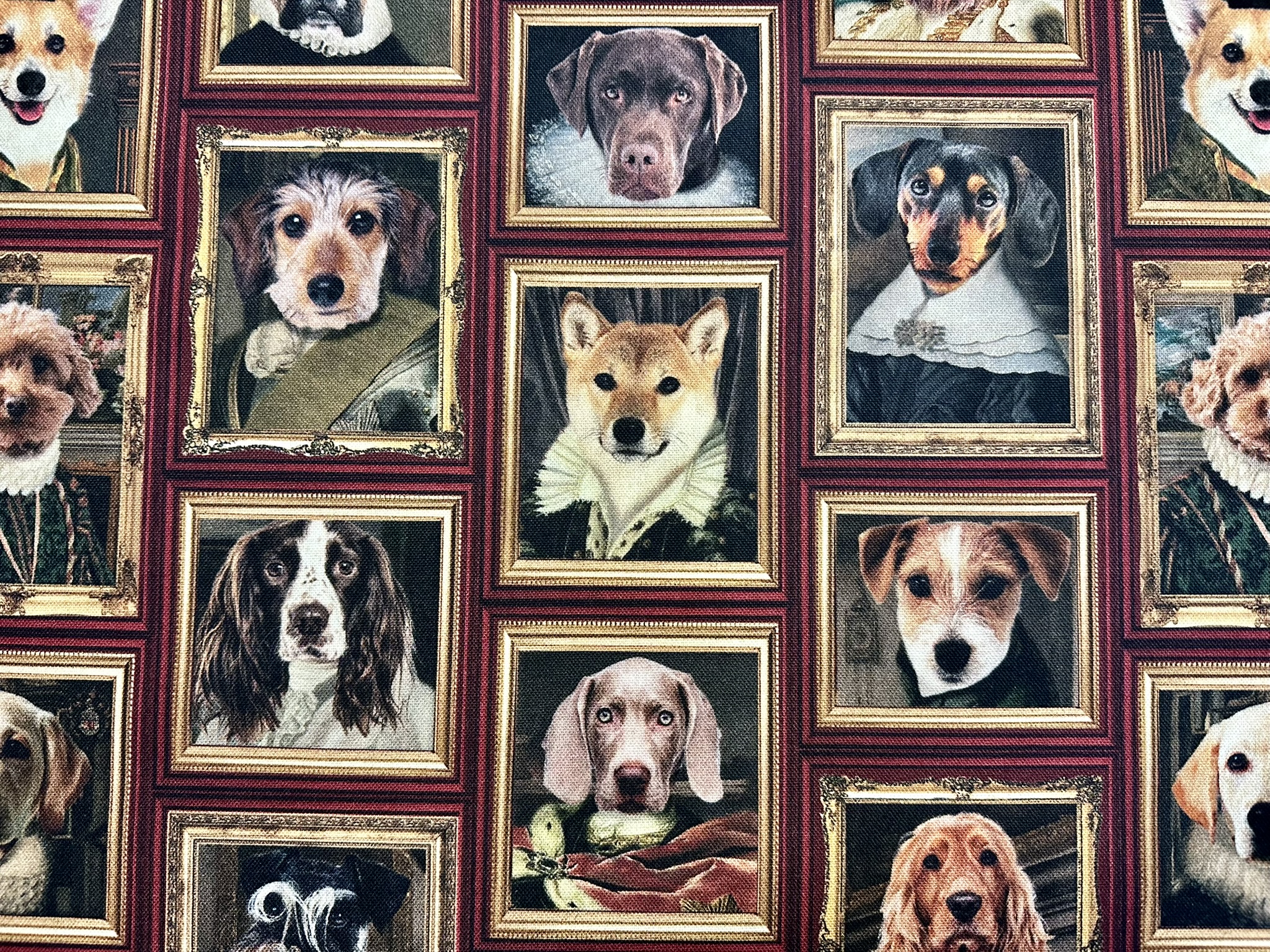 Add a touch of royal charm to your projects with this striking Royal Dogs Fabric.
