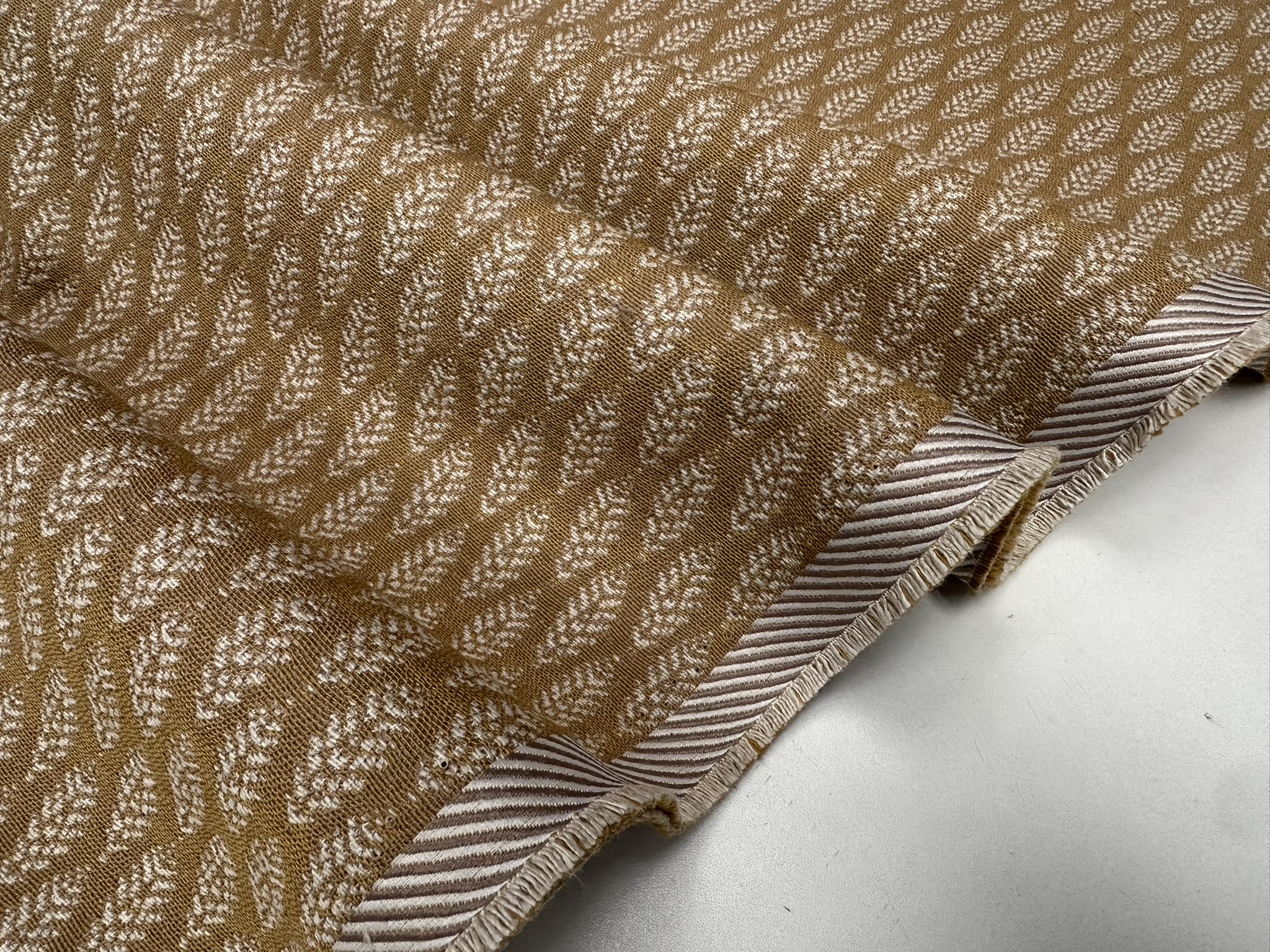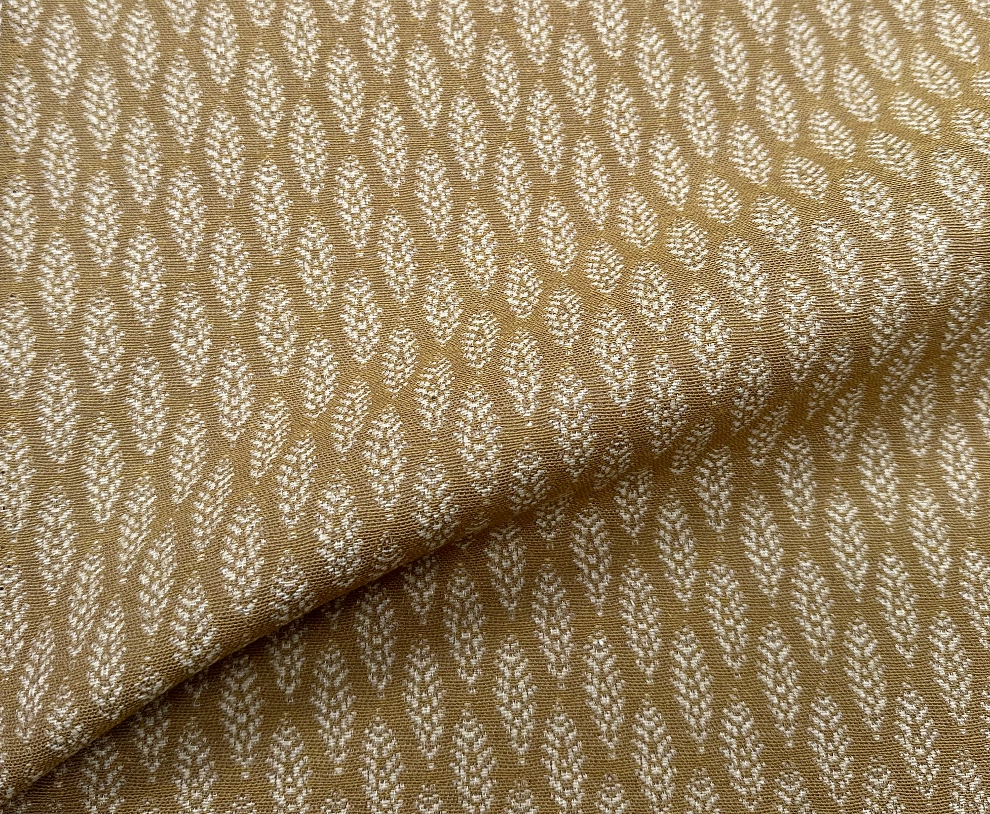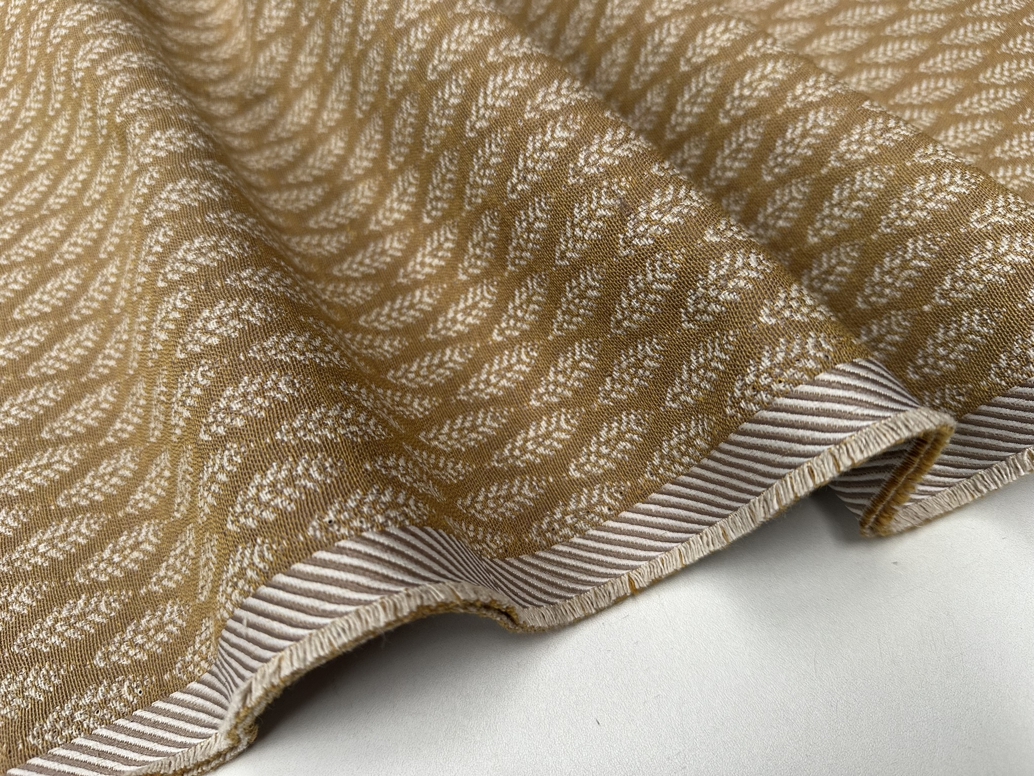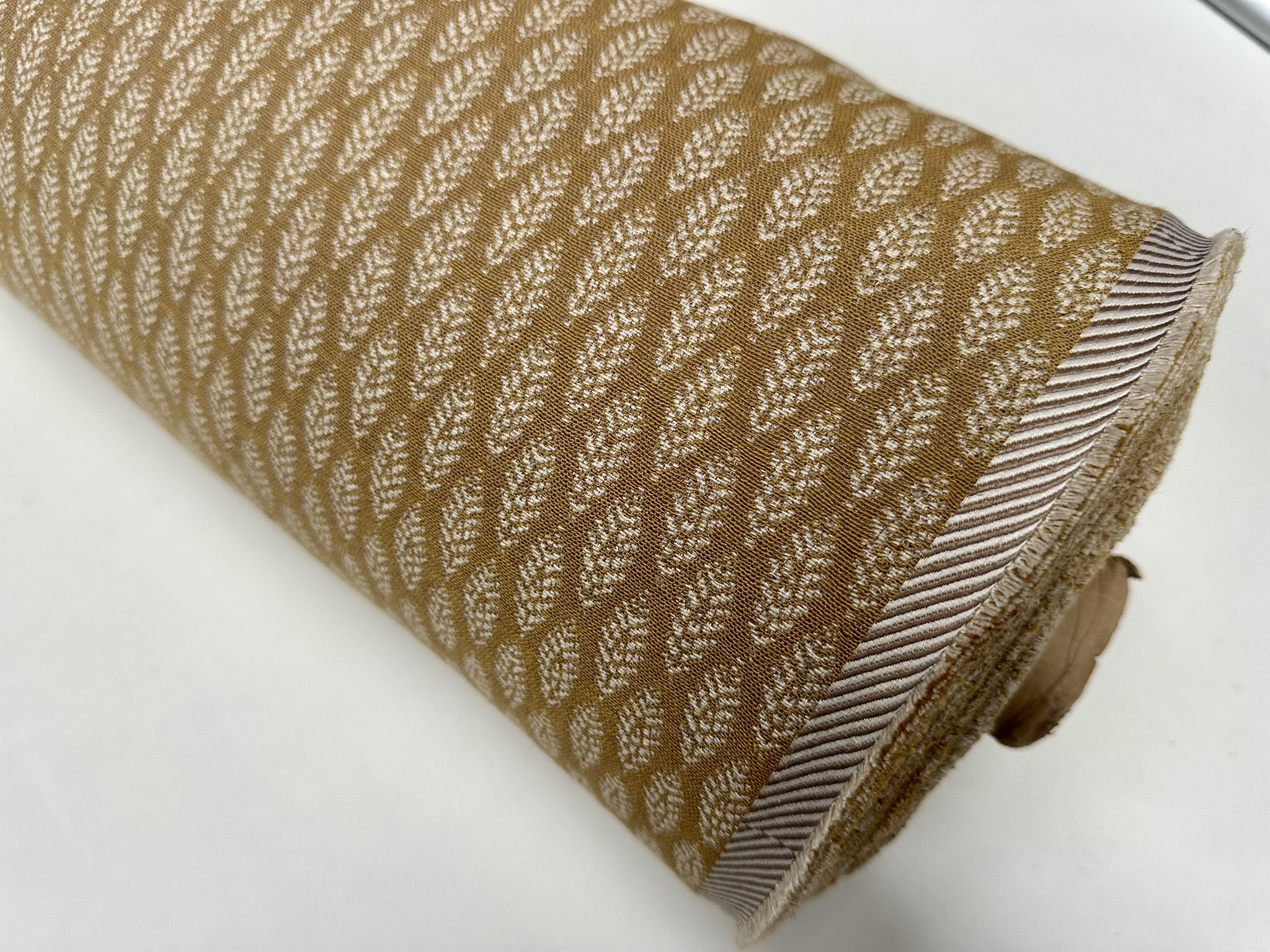 This beautifully woven fabric features a subtle Scandinavian-inspired leaf motif in mustard and cream tones. The small-scale jacquard weave adds gentle texture and warmth, making it ideal for a wide range of home décor and upholstery projects. Perfect for curtains, cushions, table runners, and soft furnishings.